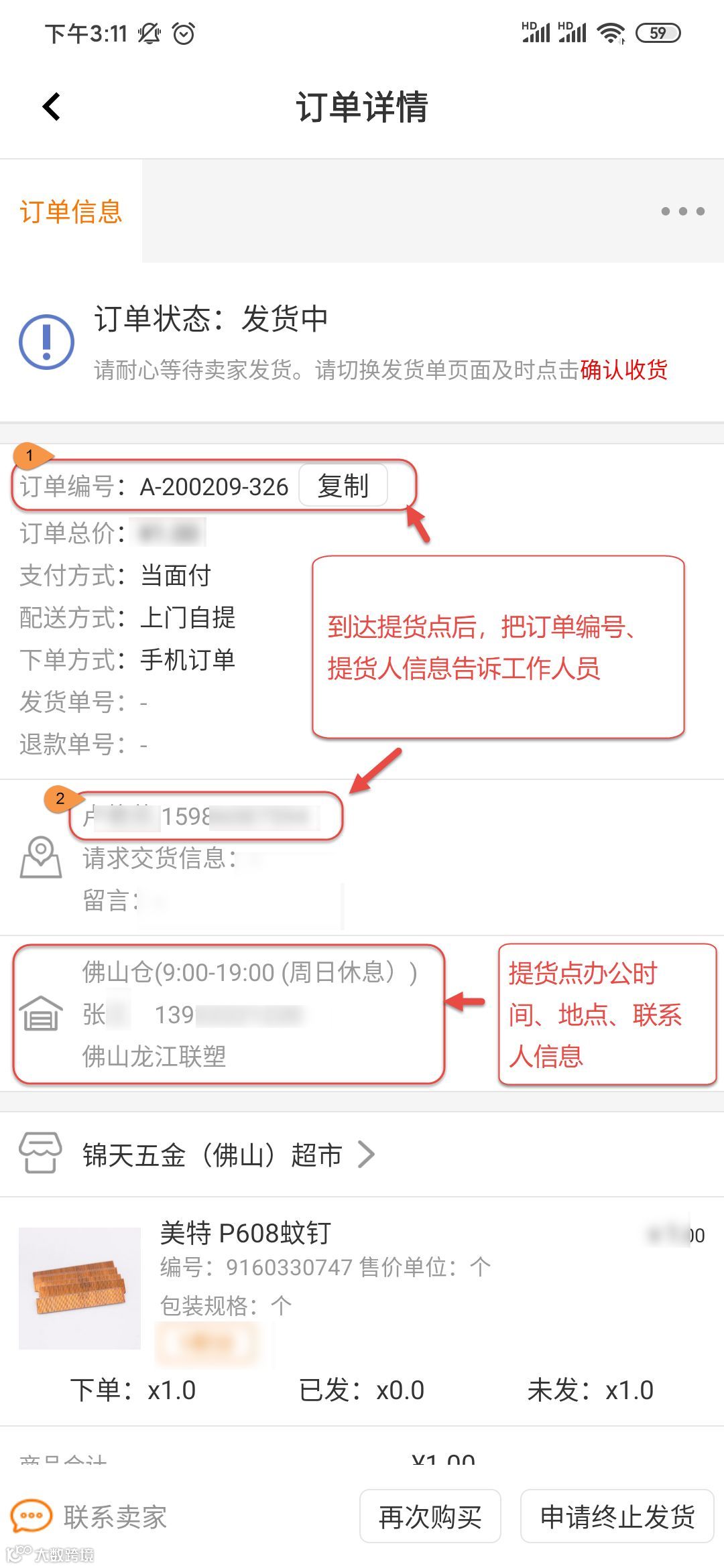 查看订单编号/提货点信息
