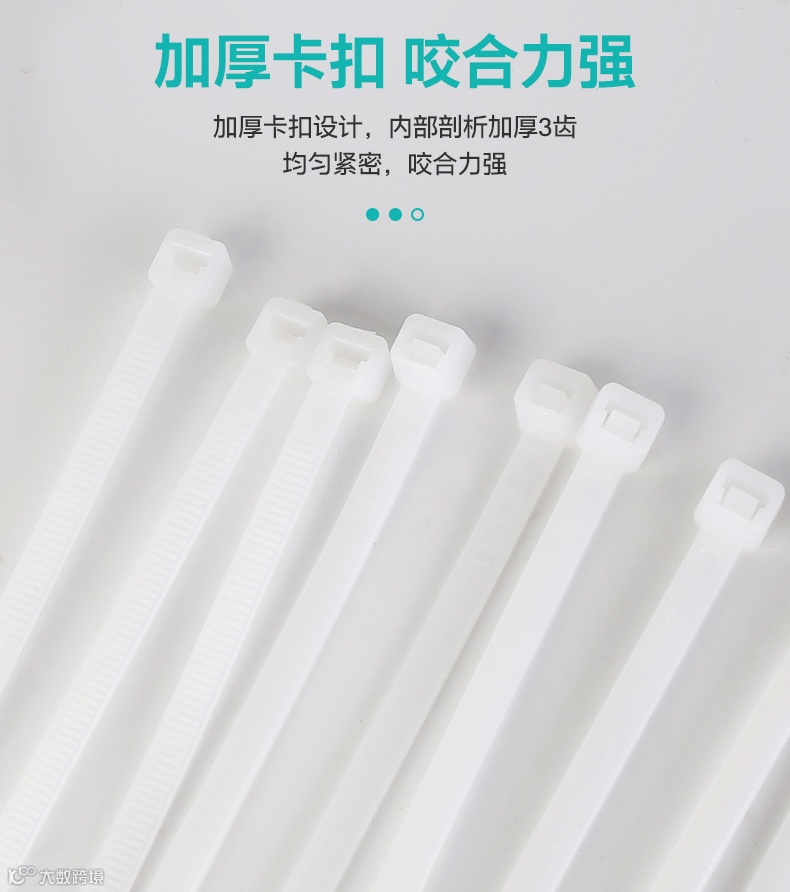 纵购商城,您的不二之选,产品质量有保证。每根扎带采用加厚卡扣,咬合力增强,卡住不易松脱。扎带齿纹清晰,韧性强,不易滑丝,不易断。