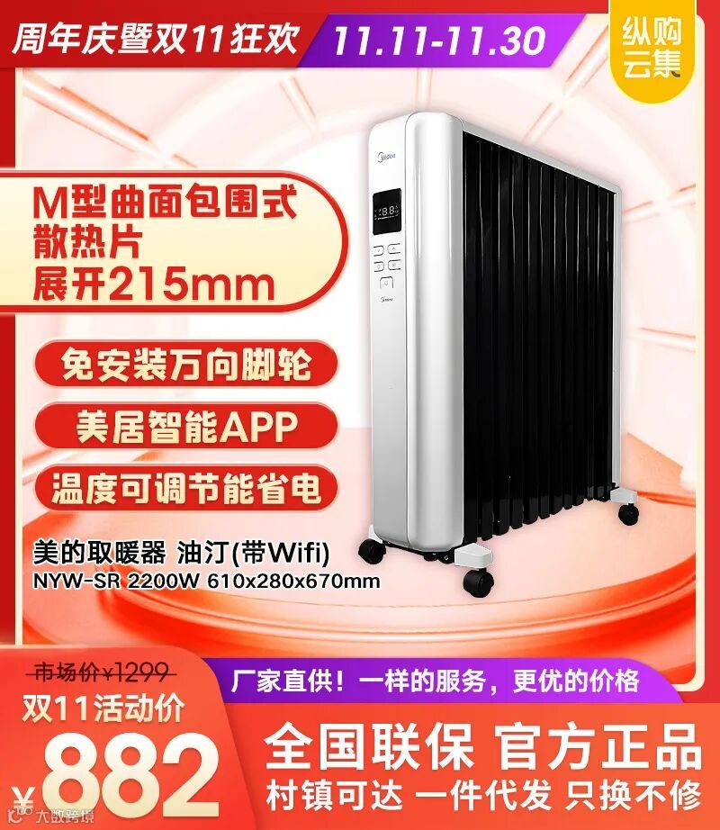 美的 取暖器 油汀(带Wifi)