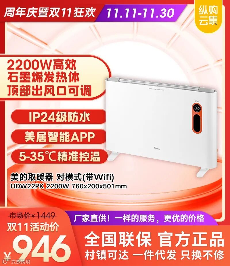 美的 取暖器 踢脚线(带Wifi)