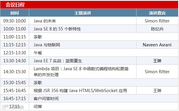 在本次活动中,您将与甲骨文公司的Java专家面对面的交流,亲身体验Java SE 8为您带来的令人振奋的新功能,了解Lambda项目以及Java在物联网应用中的特性。
