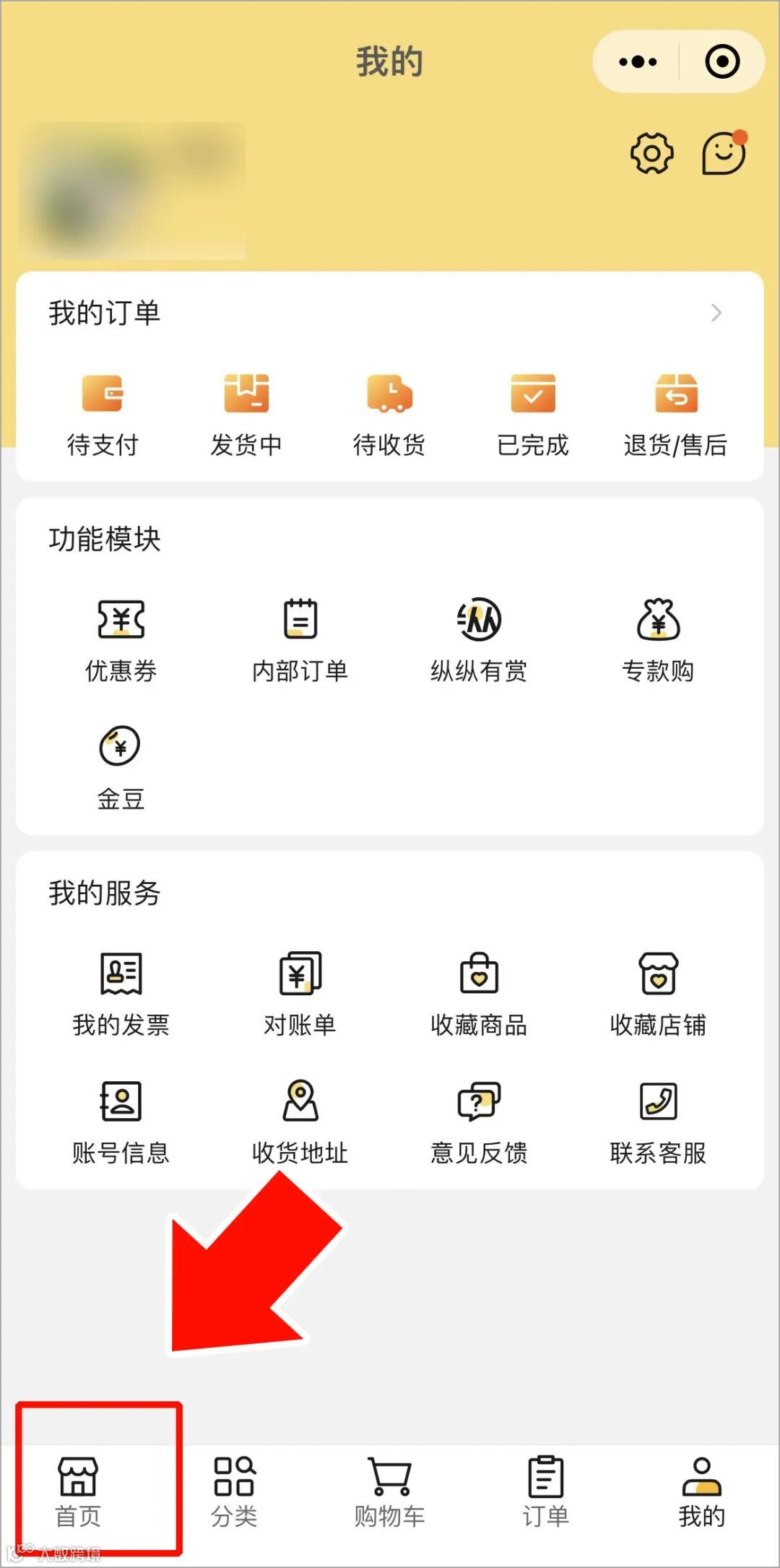 1.公众号菜单栏点击【店铺首页】即可进入纵购小程序;