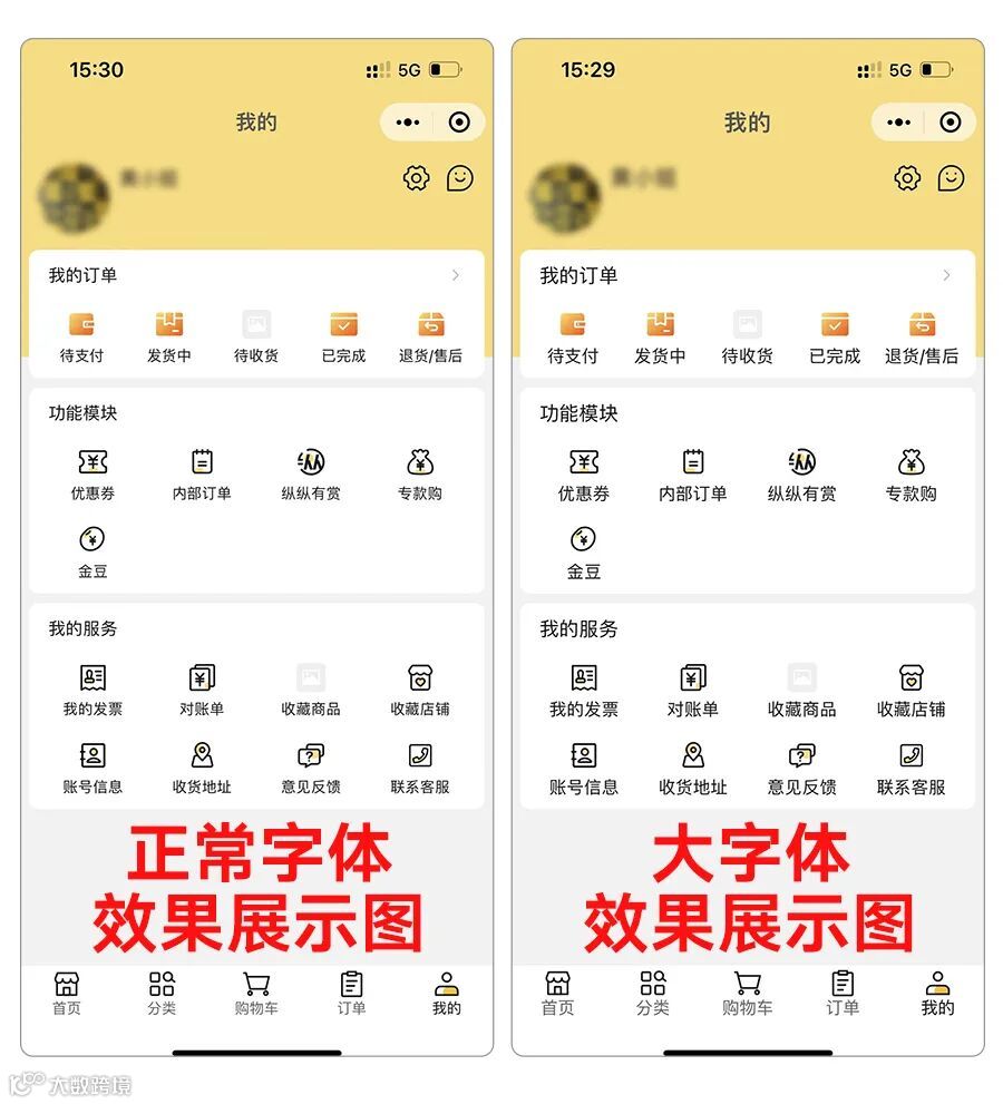 ▲字体大/小对比图▲