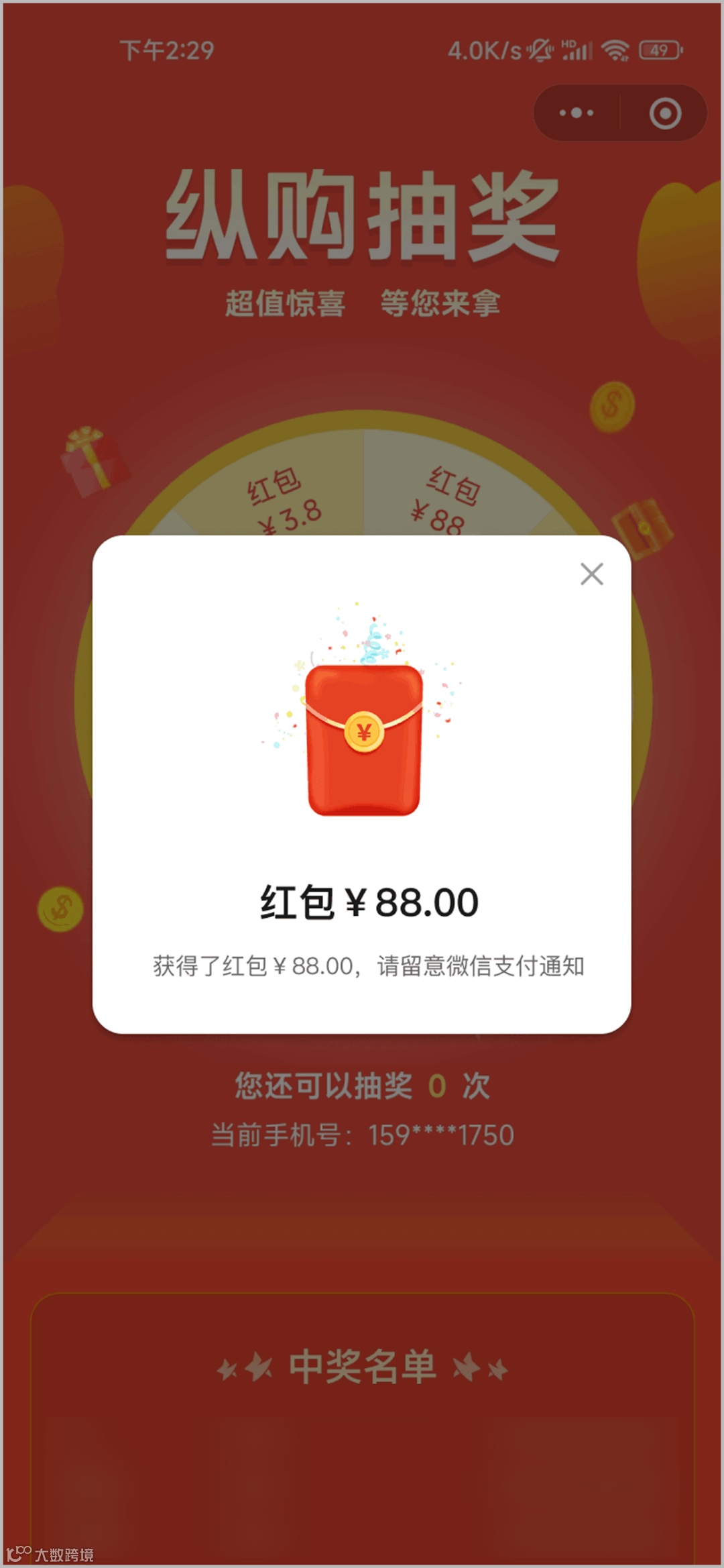 参与锦鲤红包抽奖活动