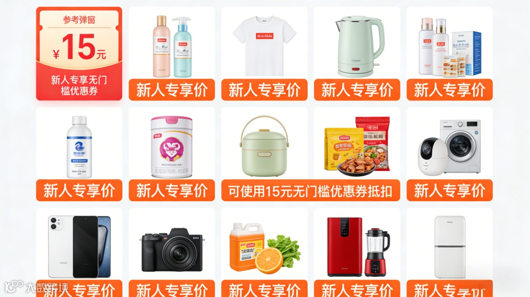 新人领取15元无门槛券后,若商城内没有适配的商品,用户依然不会下单。因此,商家需搭建“新人专属场景”,引导用户快速完成首次消费,让优惠券真正发挥“转化作用”。