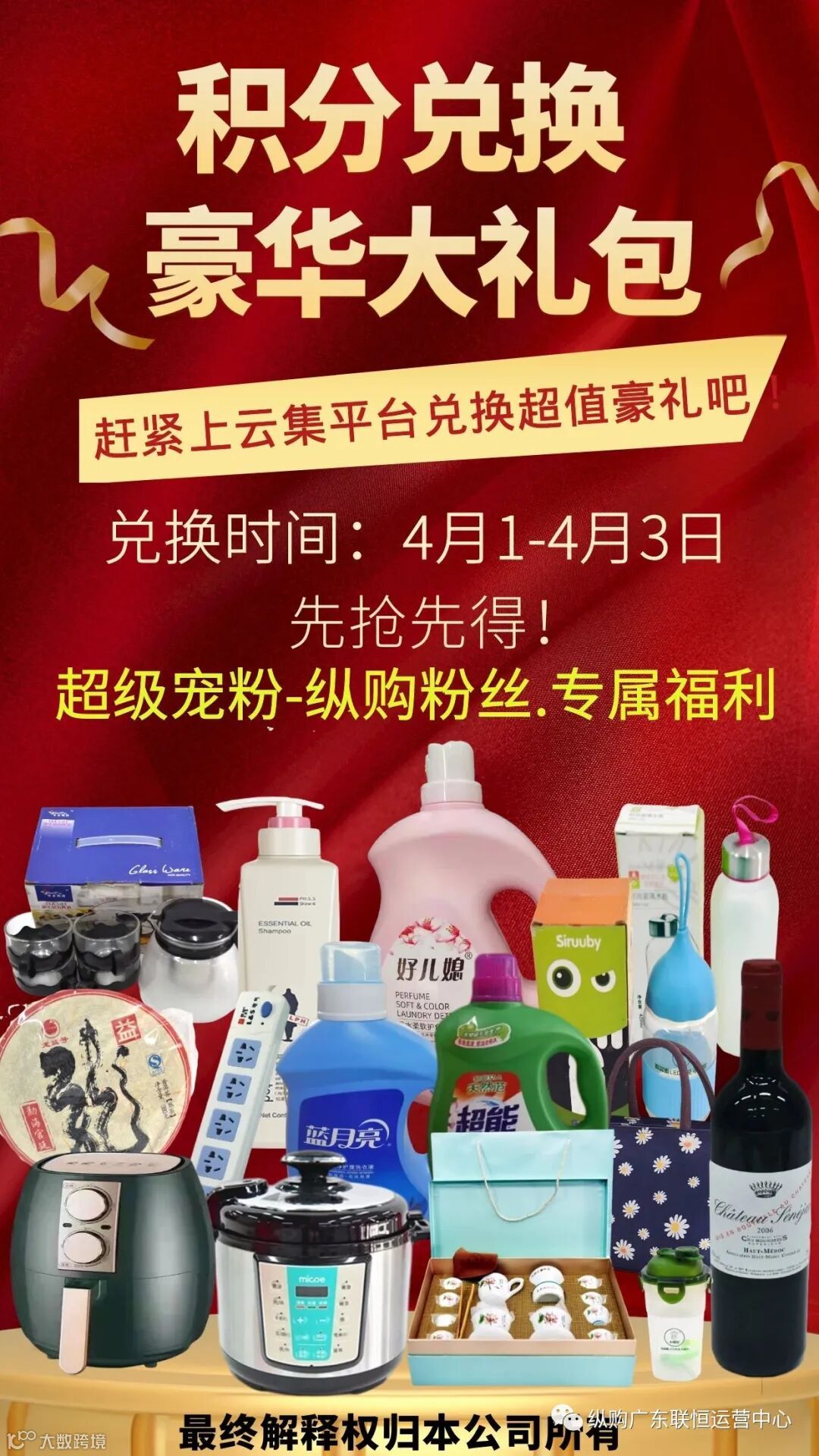 积分兑换豪华大礼包!上线啦!纵购粉丝专属福利!赶紧上联恒云集平台,兑换超值豪礼.......
