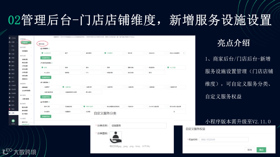 管理后台-门店店铺维度,新增服务设施设置管理;【新增】