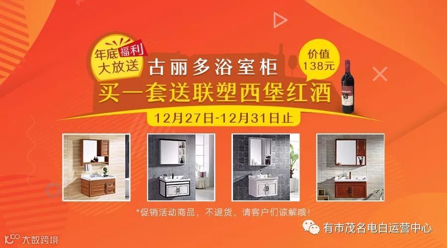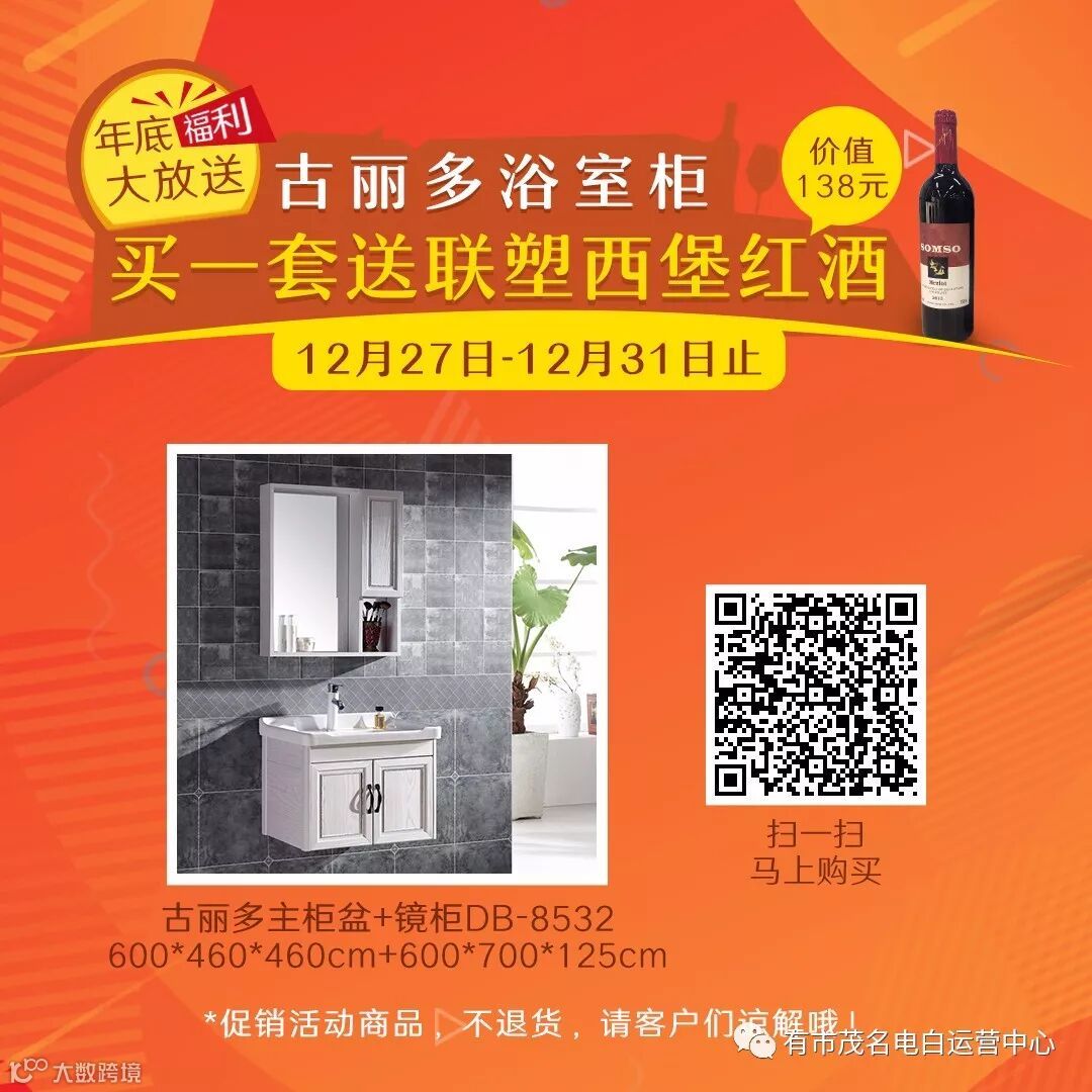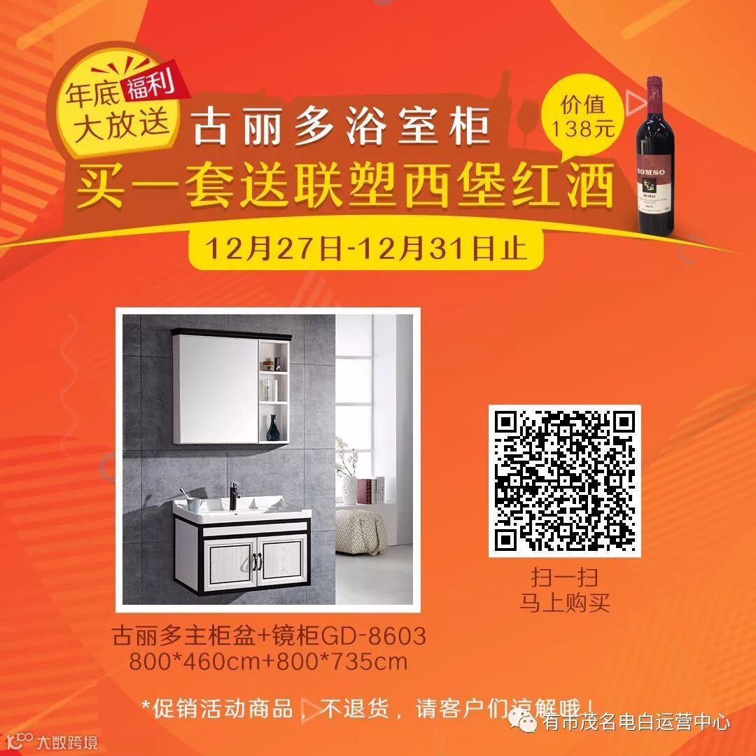 买古丽多浴室柜送:联塑西堡红酒价值138元!活动时间:12月27日-12月31日