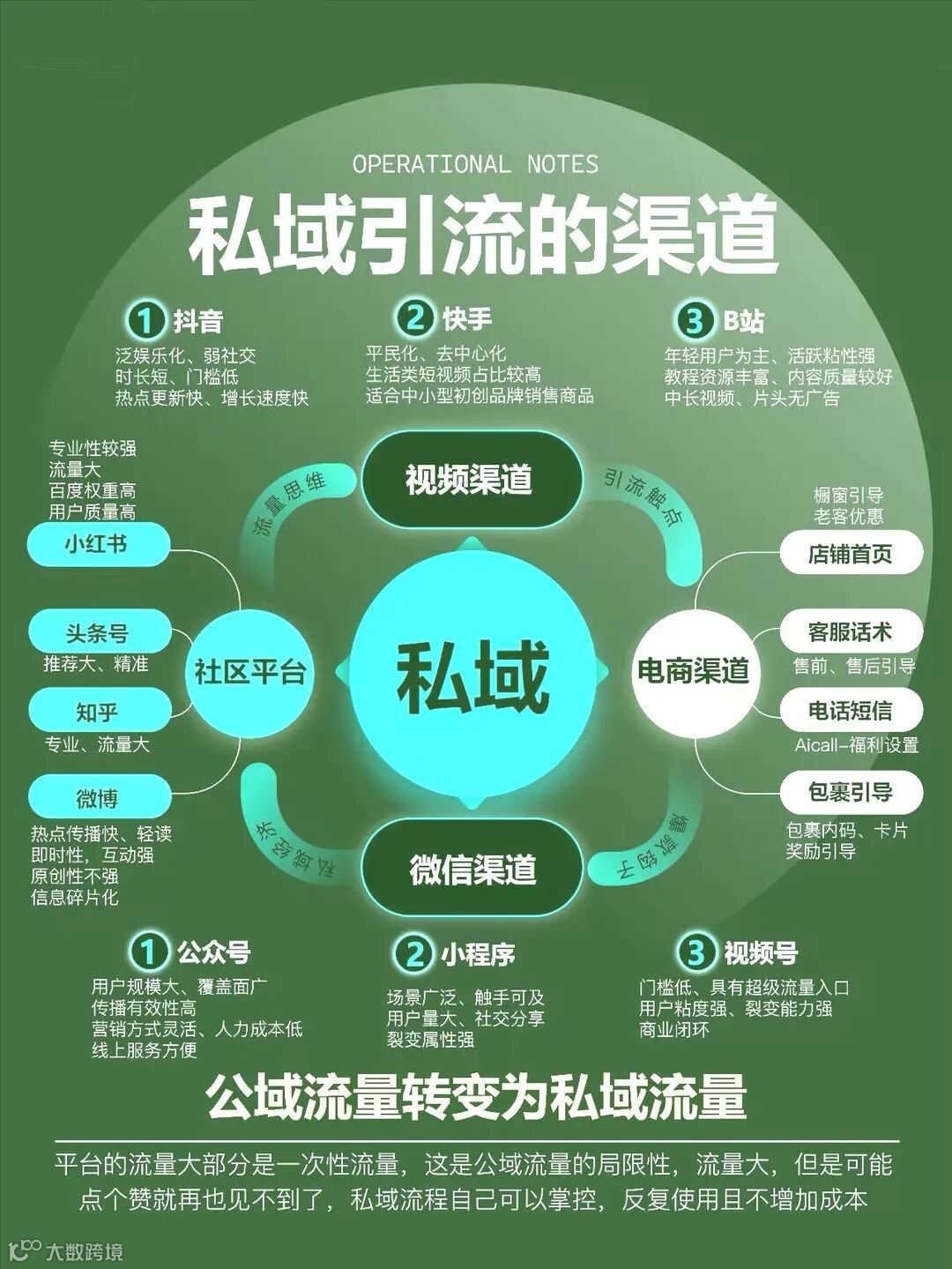 一是,3大线上公域阵地,包括微信APP公域流量阵地(微信公众号、扫一视频号、搜一搜等)、其他APP公域流量阵地(抖音、快手B站、微博等)以及PC端公域流量阵地(门户网站、信息流平台等)。
