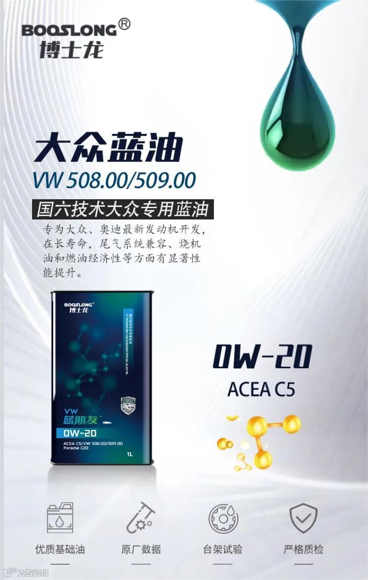 博士龙蓝油携一身 “蓝”色超能力登场,它拥有专属蓝绿颜色标识,满足大众VW508 00/509 00认证标准,专为要求使用0W-20粘度机油的大众新款发动机研发,一登场便成为高端润滑的“蓝色标杆”。它究竟藏着哪些 “蓝色超能力”?又为大众车主带来哪些卓越体验?今天我们来层层揭秘!