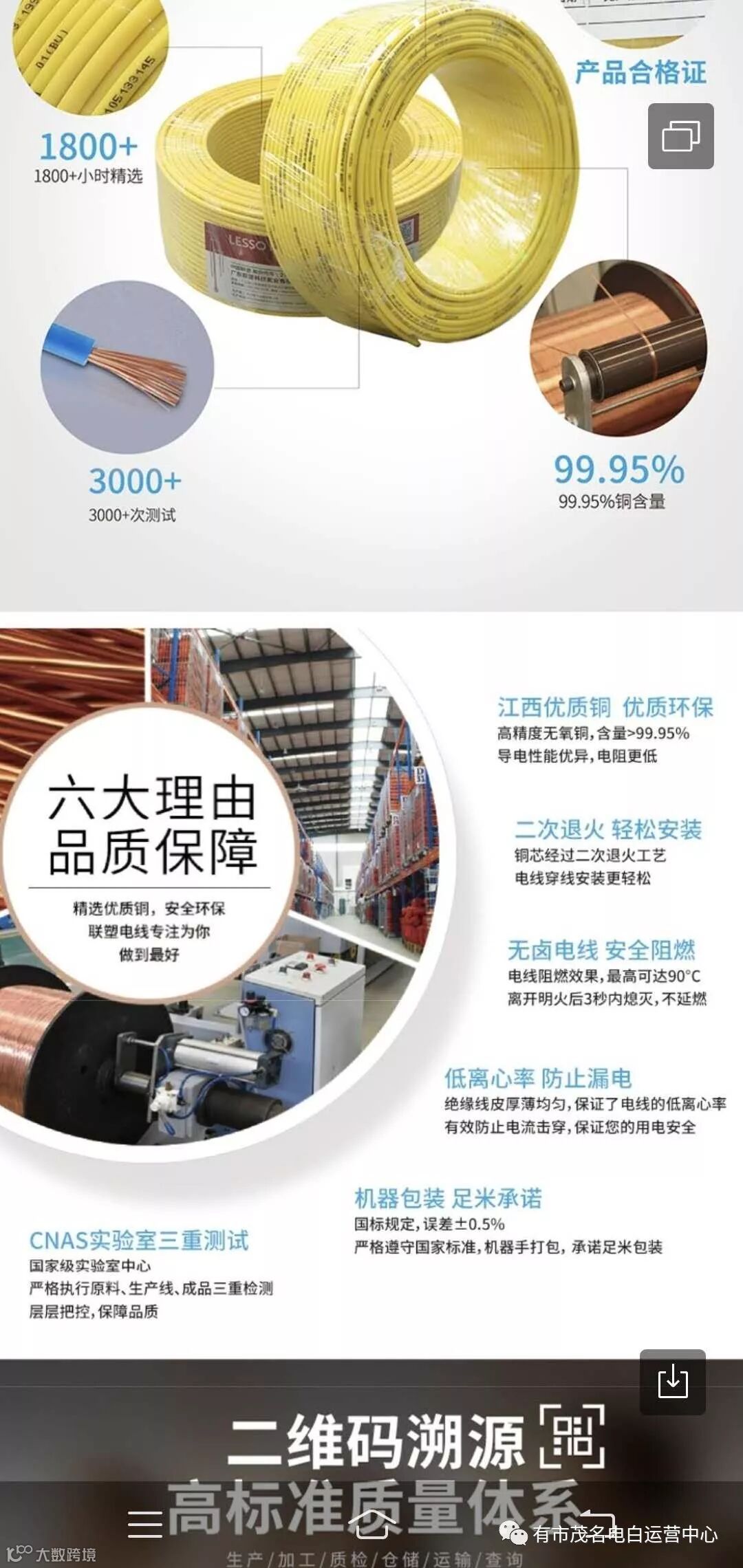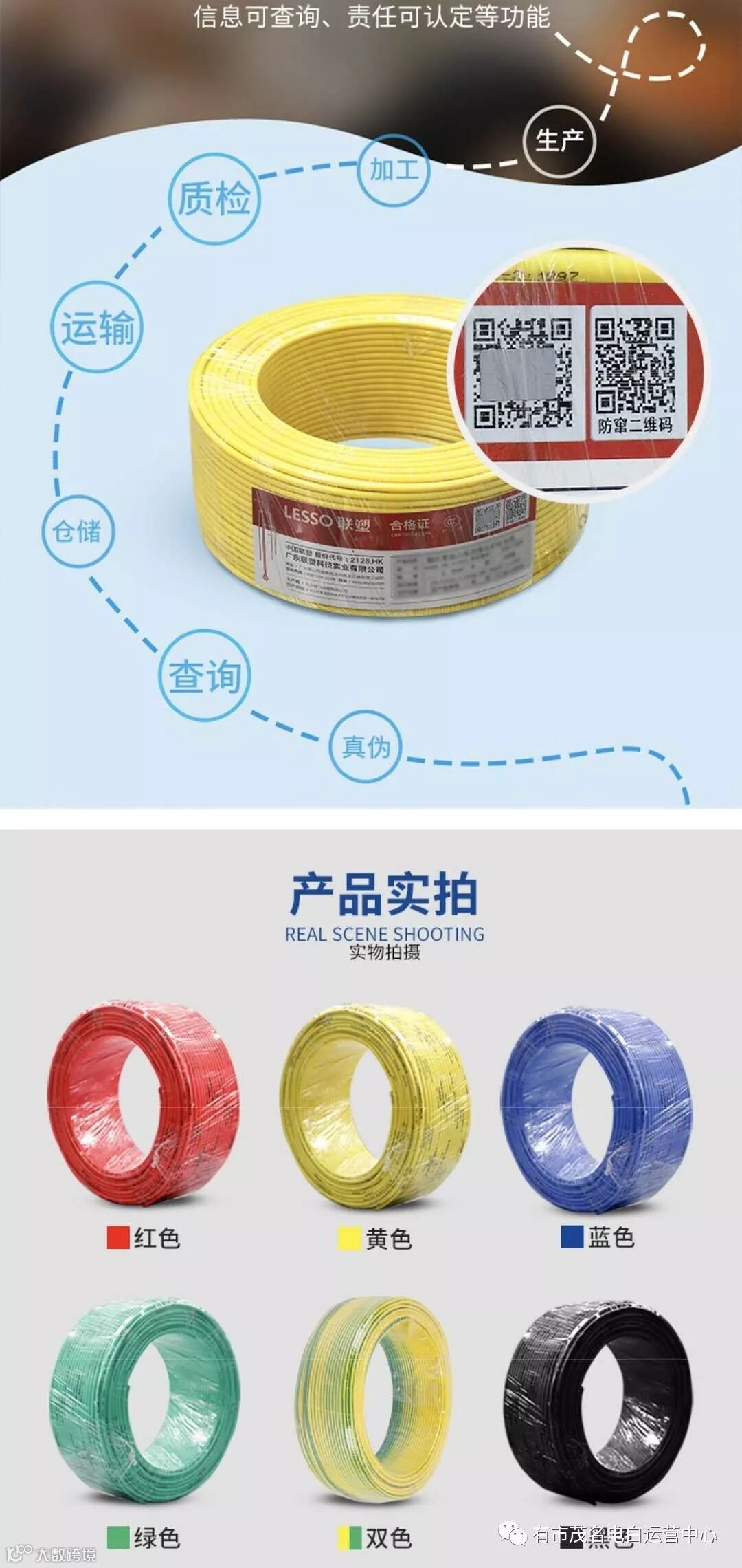 联塑电线二维码溯源高标准质量体系,扫一扫即可实现商品安全预警、源头可追溯、流向可跟踪、信息可查询、责任认定等功能!