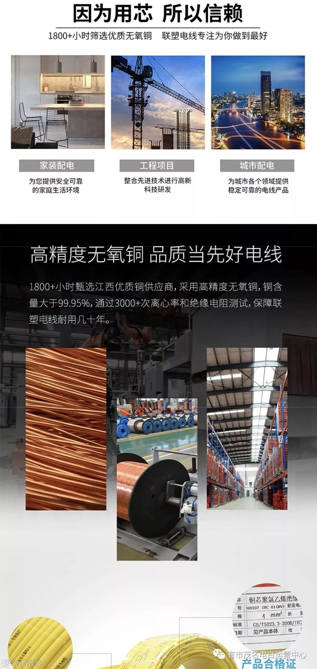 联塑电线专注为你做到最好。高强度/耐磨损/耐腐蚀,一场先进科技的盛宴。NEW品质升级工厂直销质量保证放心使用。1800+小时筛选优质无氧铜,高精度无氧铜,品质当先好电线。1800+小时甄选江西优质铜供商,采用高精度无氧铜,铜含量大于99.95%,通过3000+次离心率和绝缘电阻测试,保障联塑电线耐用几十年。