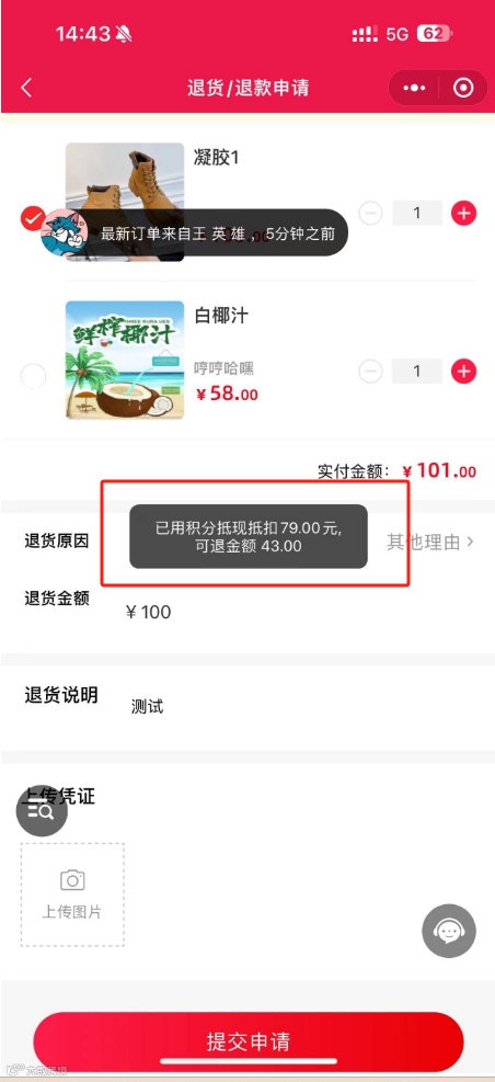 积分抵现退款提示优化