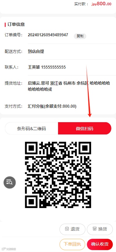 后台设置后,进入自提核销订单详情,默认显示对应选择的优先核销码