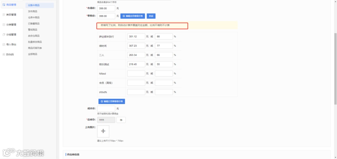 若会员等级价格即填写比例又填写了固定金额,每次编辑商品保存都会根据比例重新计算金额并自动覆盖之前固定金额;