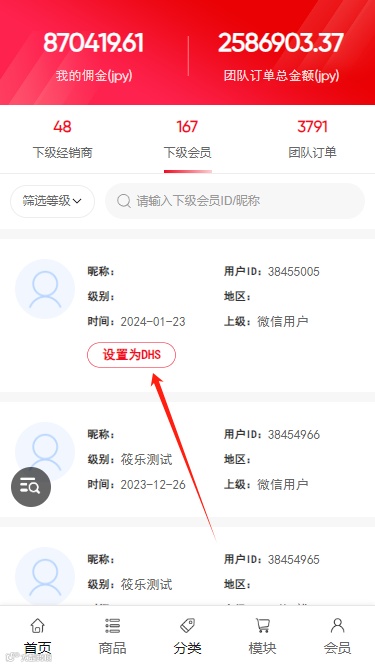 订货商中心的下级会员页面,设置为订货商字段根据后台自定义名称进行展示