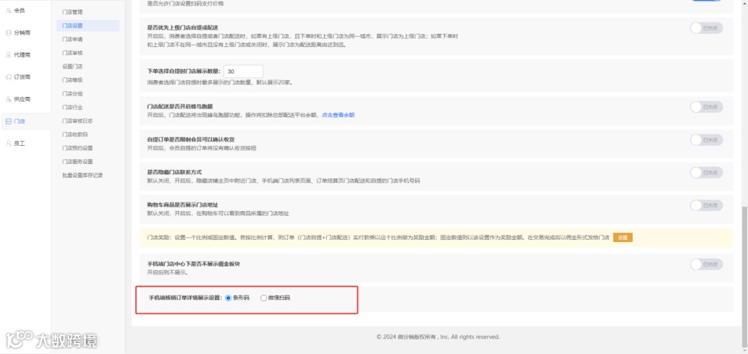 门店设置新增选择移动端核销码优先显示设置,默认优先显示条形码