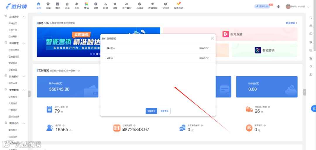 当付费插件到期时间小于30天后,每24小时会在首页弹出弹框进行提醒