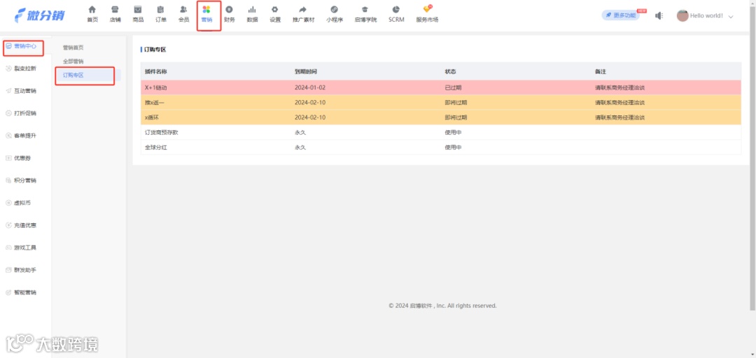 方便商家更为直观的了解所购买的付费插件开通情况和到期时间