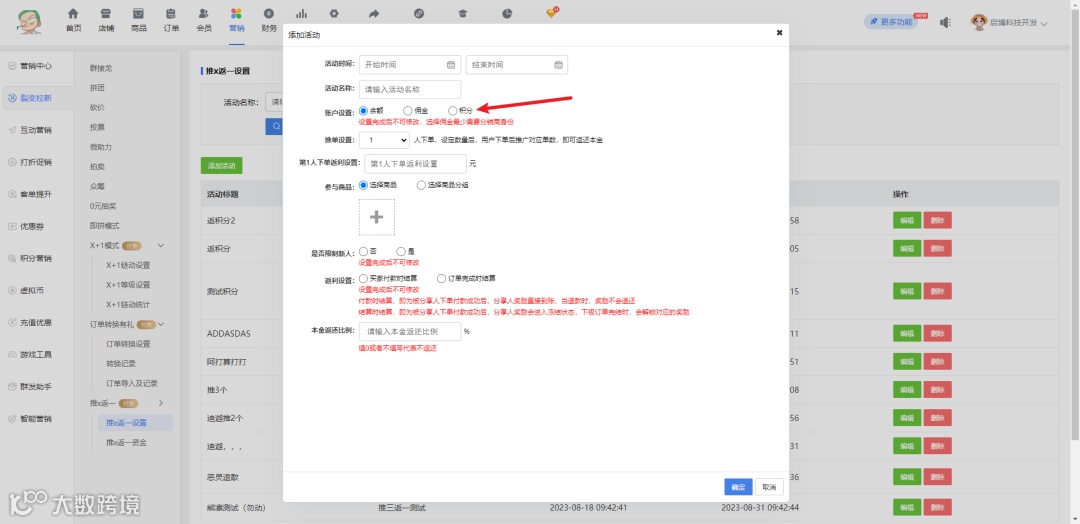 “推X返一”新增返积分模式【新增】;