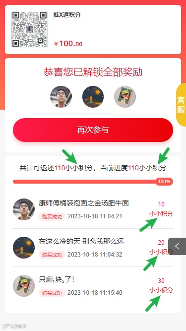 “推X返一”新增返积分模式