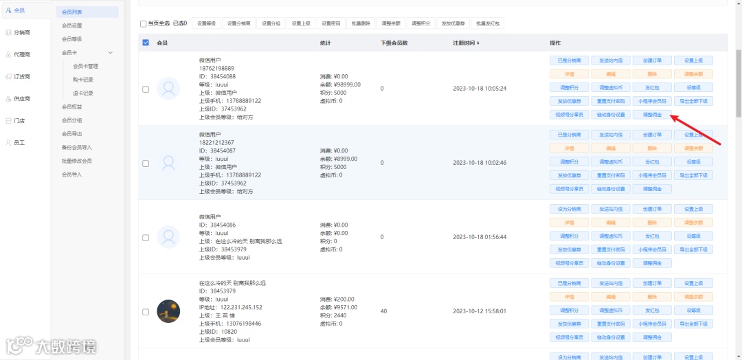 ②会员列表新增调整佣金按钮,开通通联分账或汇付分账的商家也可兼容使用