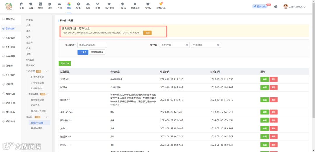 新增自定义装修链接,链接进入的是自动筛选推X返一的订单列表
