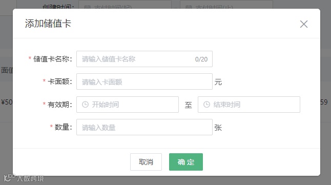 商家可以自定义设置储值卡名称、金额、有效期、数量等信息。