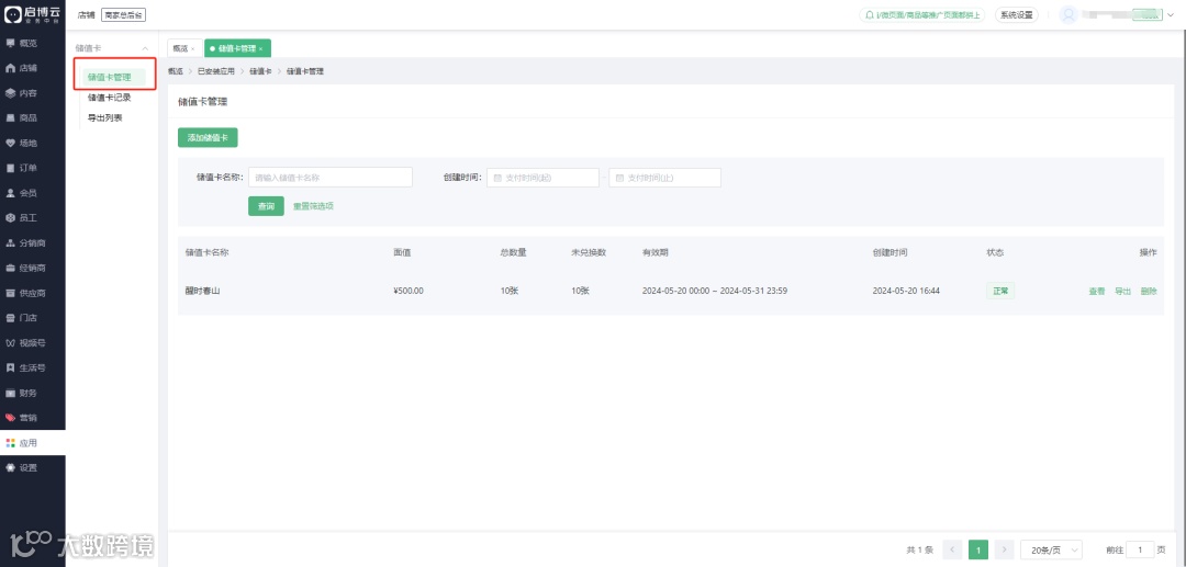 商家可以导出储值卡信息,并在线下制成实体卡给会员兑换或者送礼。