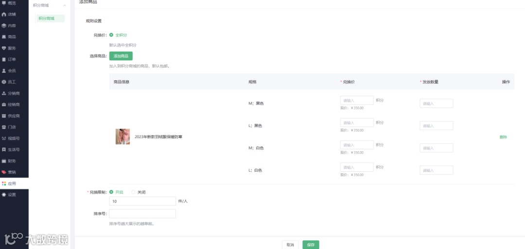 添加积分商城商品(仅支持全积分)