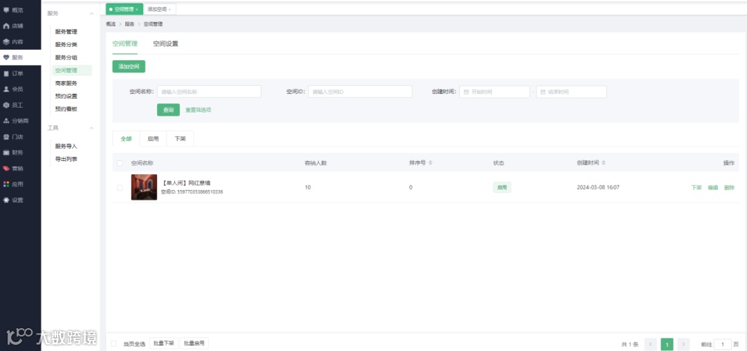 查看商家的空间(不包含门店下的空间)