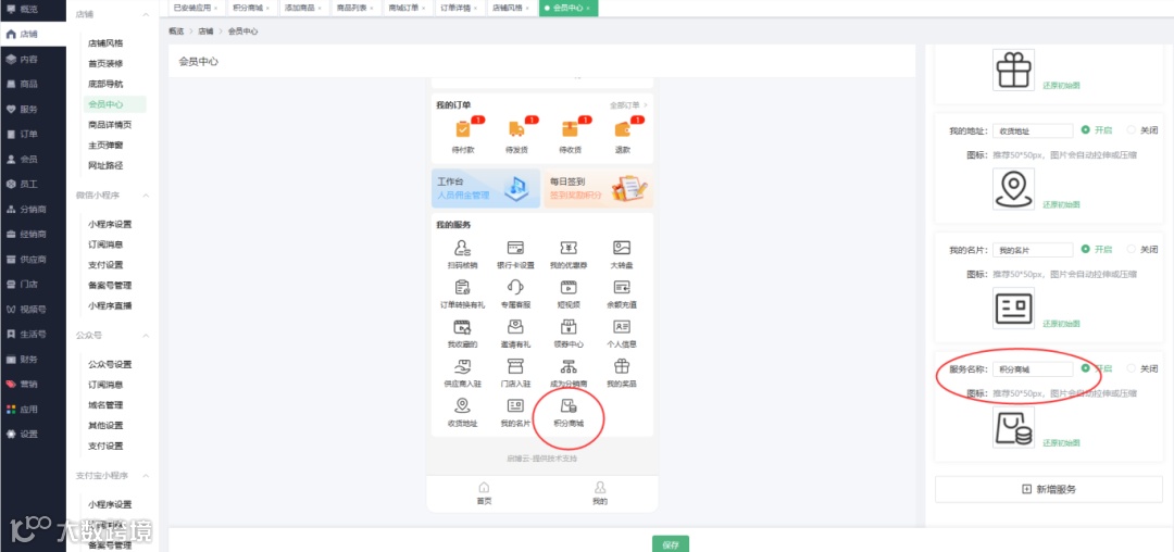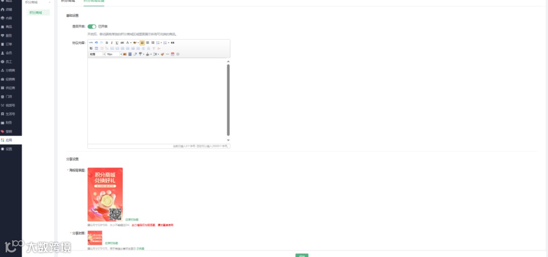 2、积分商城设置: