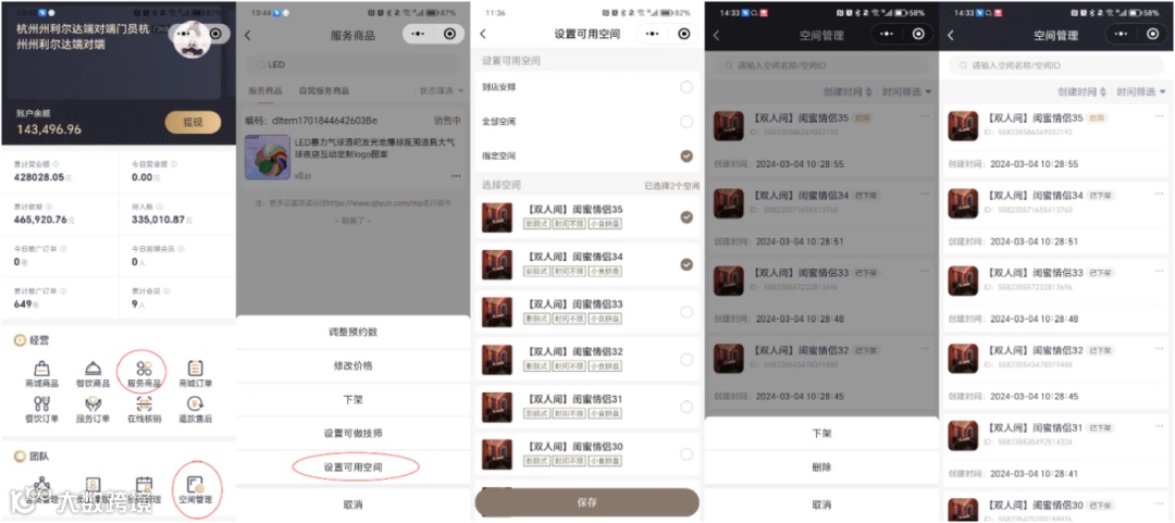 商家可以设置空间,用户方便根据空间预约项目(小程序版本需升级至1.13.0)