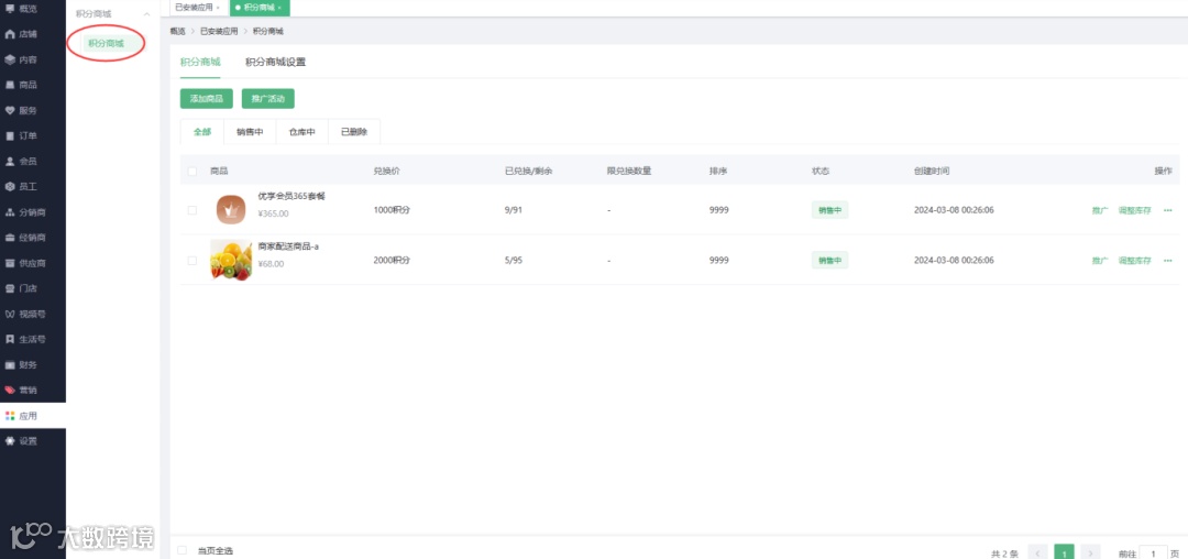 新增积分商城应用