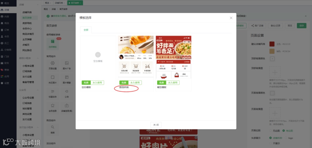 2、首页装修-新增1套餐饮模板