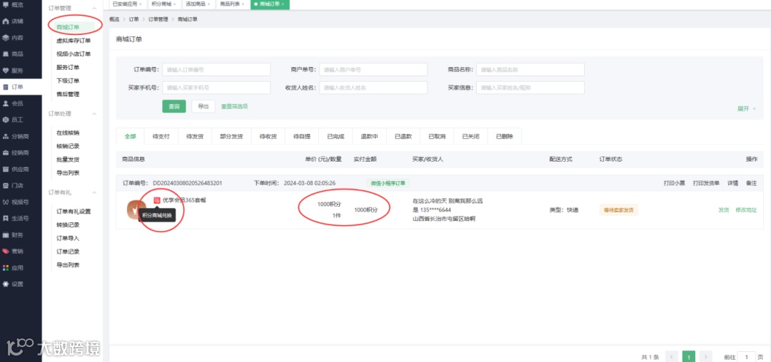 开启后,移动端可进入积分商城进行兑换商品