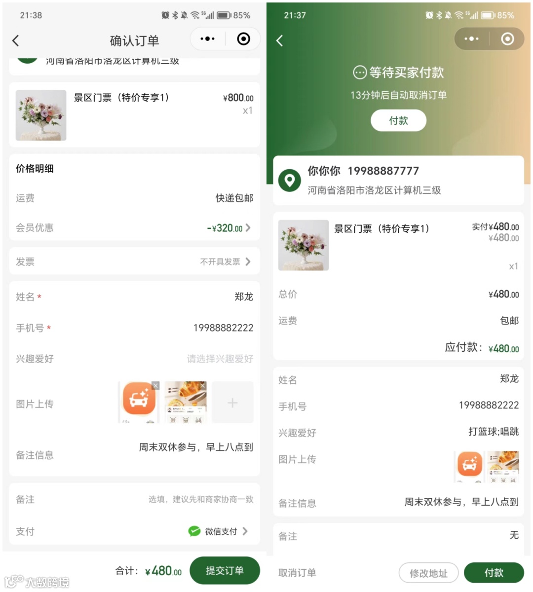 4、确认订单:显示信息收集、并填写信息