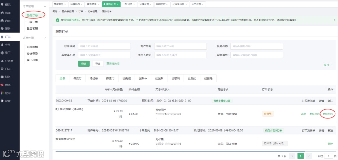 管理后台-服务、技师、空间支持、替换资源别名;