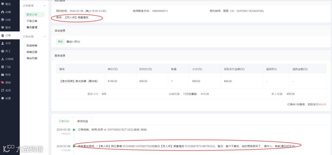 订单详情可查看空间、更改空间日志