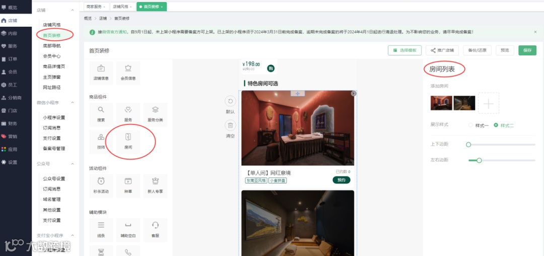 4、首页装修-新增空间组件,可自选样式一、样式二