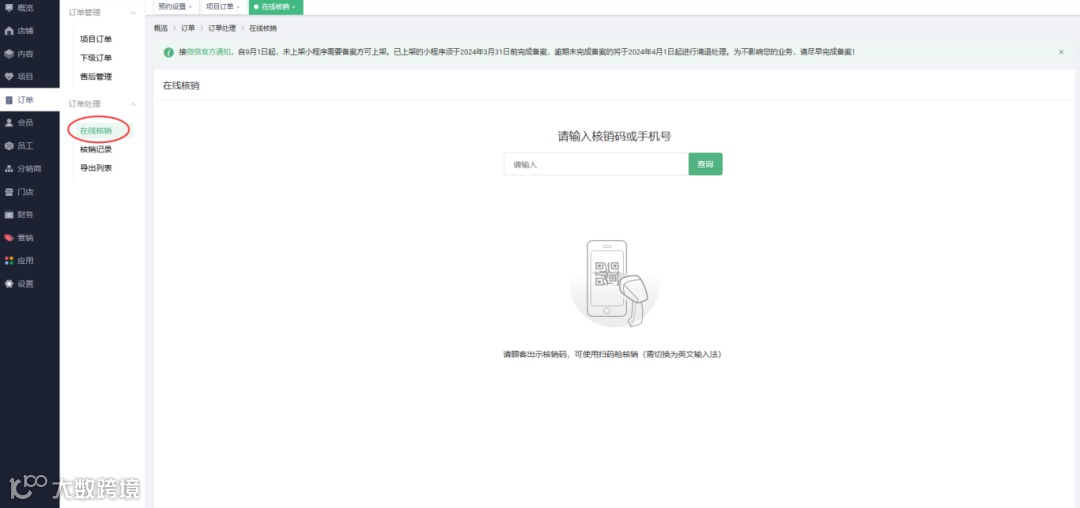 管理后台-在线核销可扫码枪核销