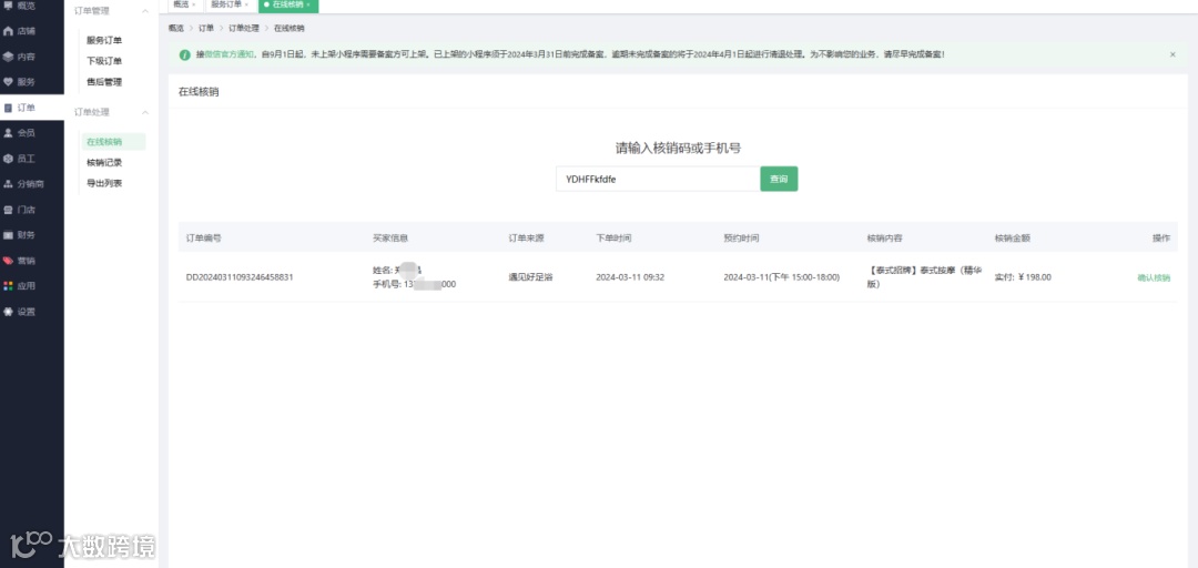 移动端门店工作台-订单管理、在线核销