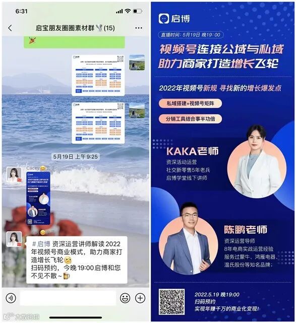 3、社群裂变,提高预约量:直播预告生成专属推广二维码分发到社群内,设置激励政策招募推广员和分享员。