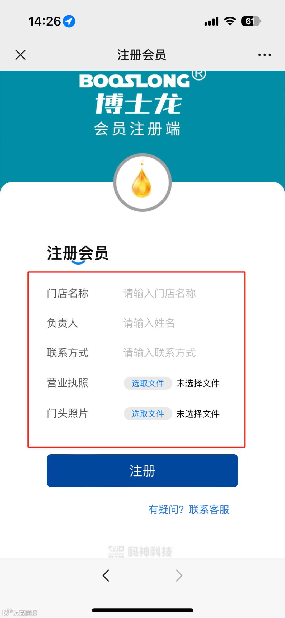 4.输入以上信息,点击注册→联系当地经销商或区域负责人联系后台审核。