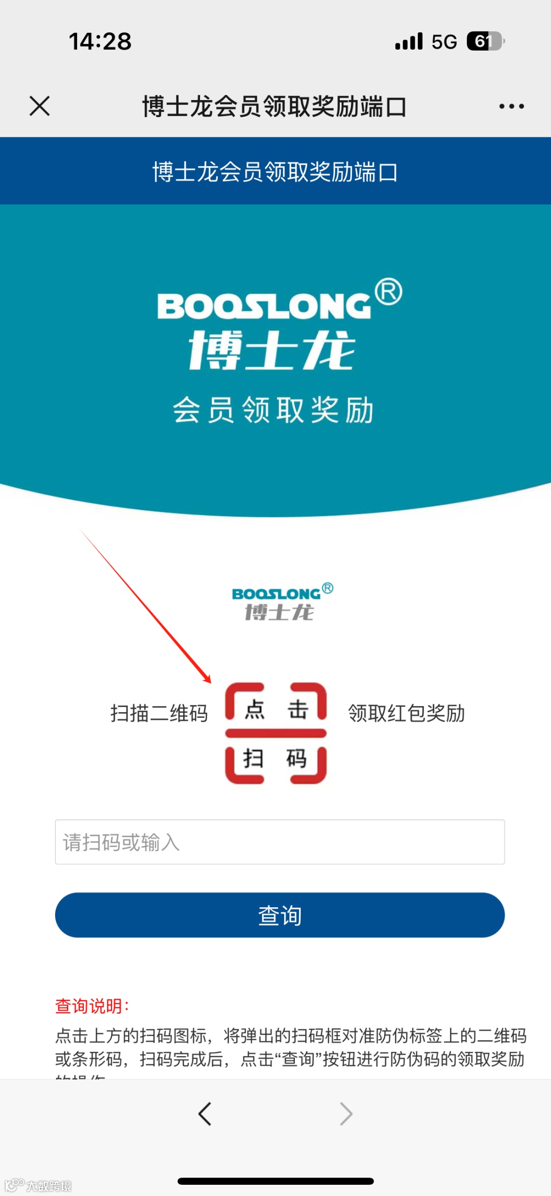 1.审核通过后,可微信直接扫描产品外箱二维码或者同上步骤点击“扫码有礼”