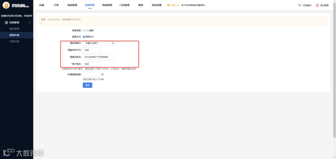 供应商后台提现,更改银行卡提交提现后,保留最后一次提交银行卡信息