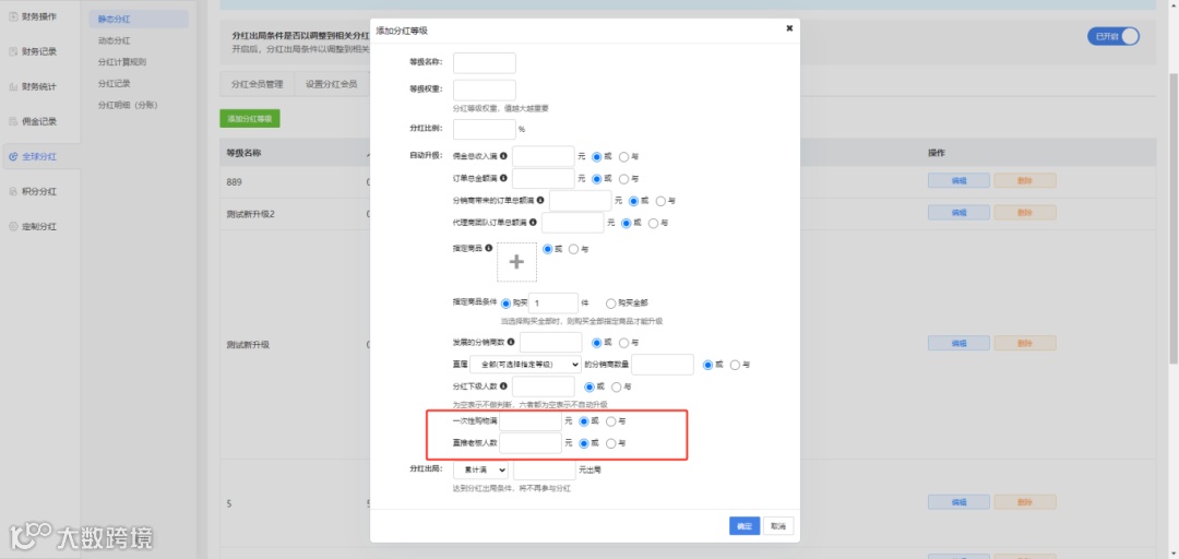 1、一次性购物满:一笔订单的实付总金额(交易完成)