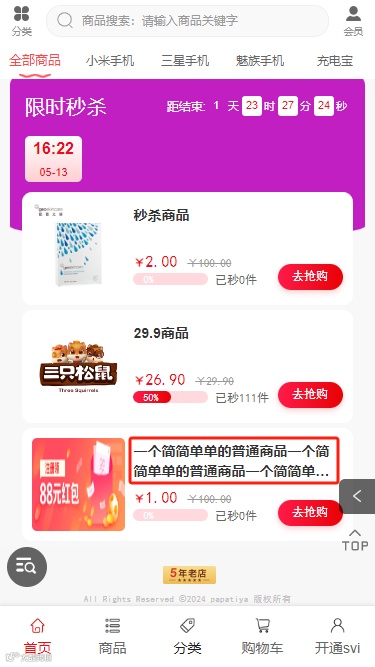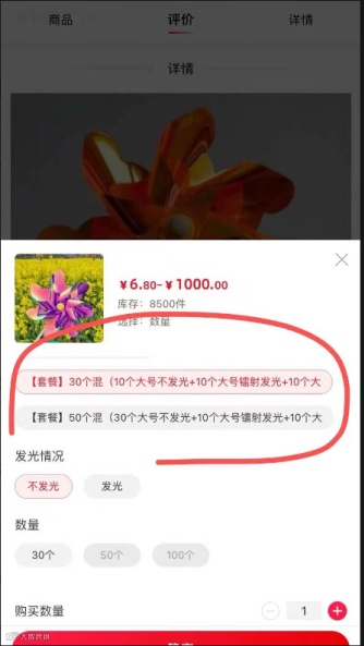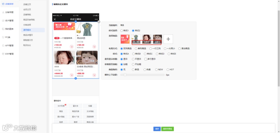 商城通用模块内的商品组件选择商品后,显示此商品目前的状态,无显示则为正常出售中的状态