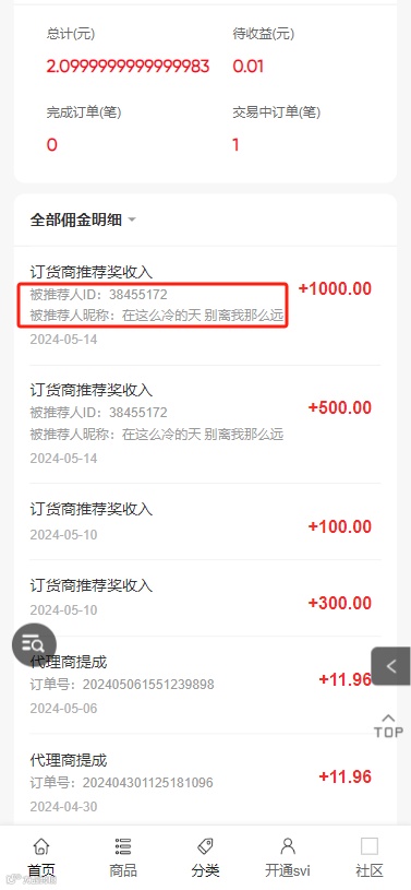 订货商推荐奖励佣金记录新增被推荐人的ID和微信昵称记录