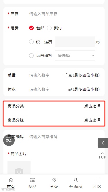 移动端供应商中心发布商品,可以选择供应商自己创建的分类和分组